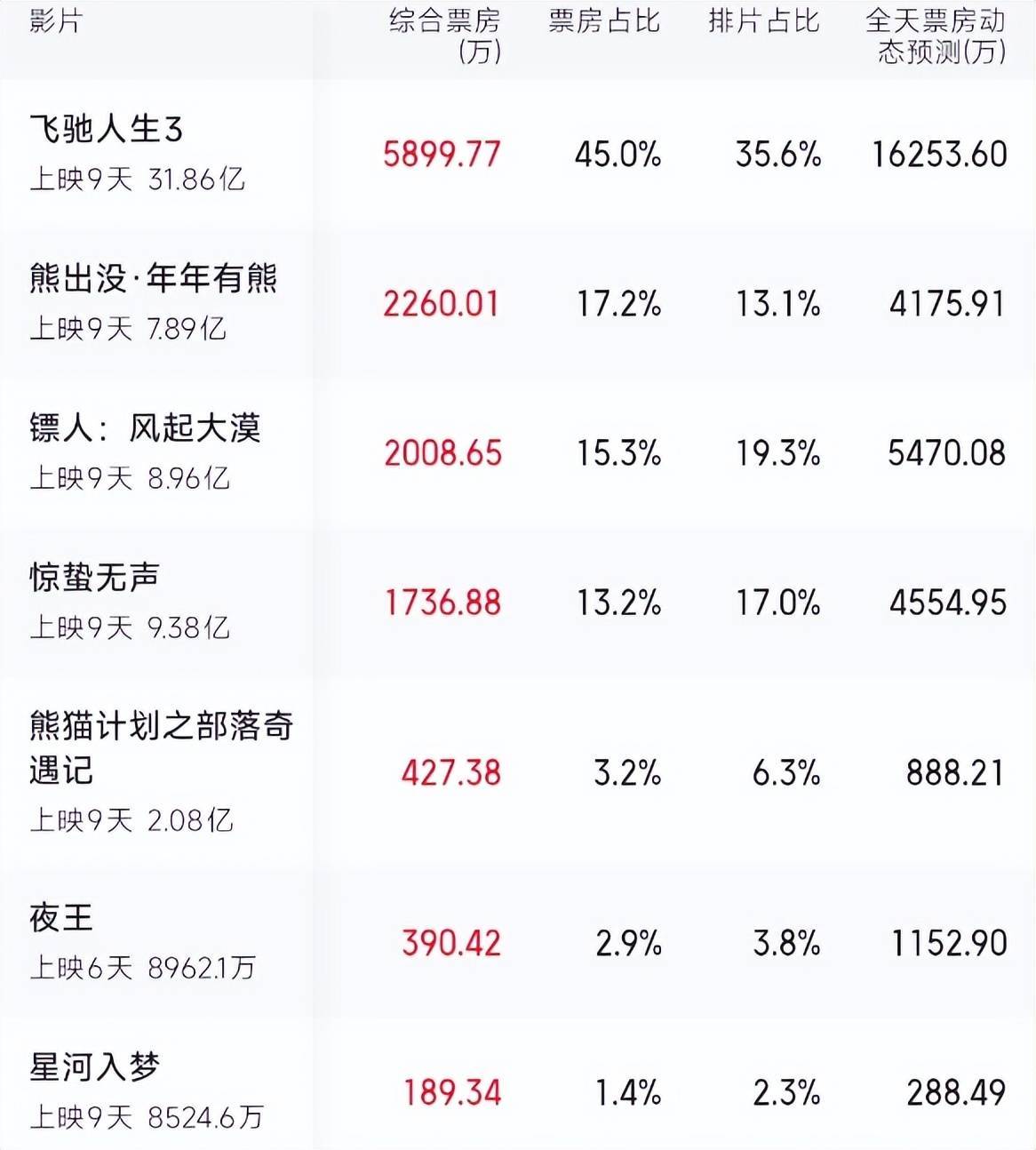 截至目前,该片累计票房超过31亿,甩开《镖人》和《惊蛰无声》能有20多亿的差距,基本没有反超的可能。